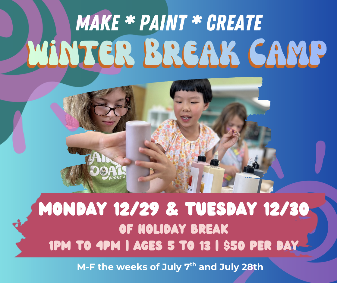 Join us on Monday or Tuesday or both for a fun filled afternoon of hand-building and painting pottery!